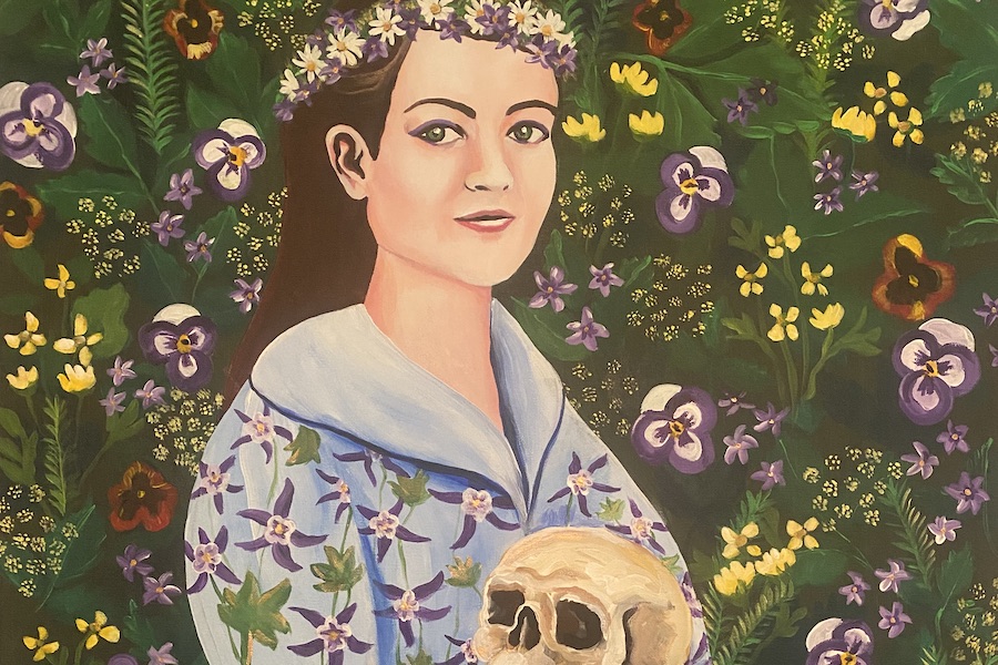 Kate Thomason Keeler portrays narratives of personal and collective struggle with a lexicon of film stills from Buster Keaton’s silent movies, family photographs, the language of plants, the story of St. Clare, Shakespearean characters, ancient myth, and anatomical diagrams.